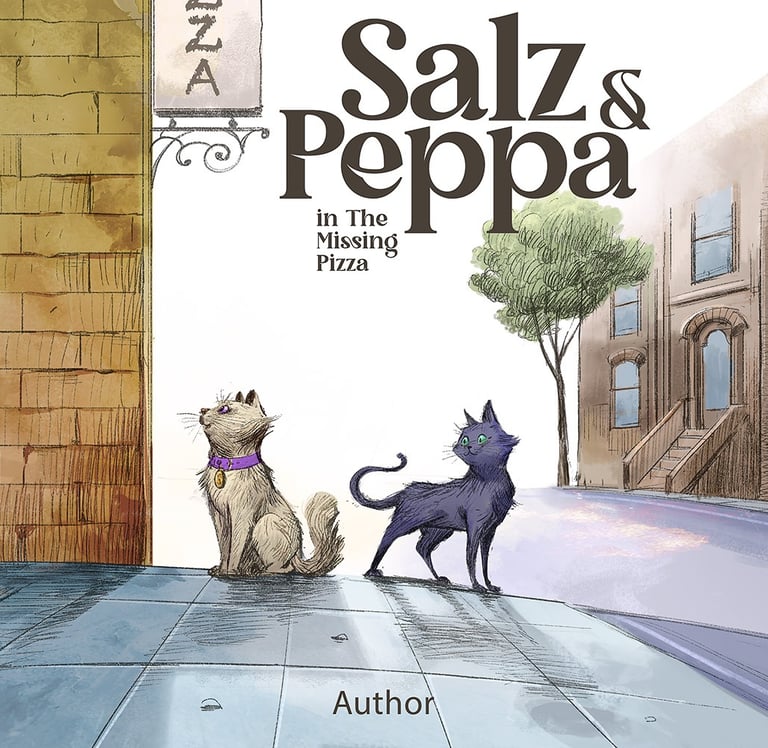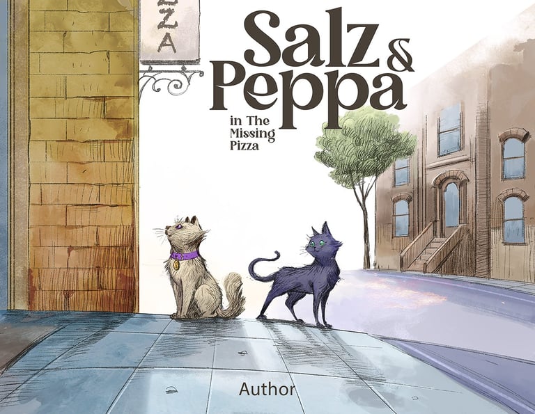 In a cozy Italian restaurant in Brooklyn, two mischievous feline best friends, Salz and Peppa, live above the bustling kitchen of Chef Antonio—who just so happens to make the best pizza in town! Peppa, a sleek black cat with dazzling green eyes, and Salz, a fluffy white cat with sparkling purple eyes, spend their days exploring, playing, and, of course, sneaking tastes of delicious treats. But when an unexpected adventure stirs up some trouble, will their quick paws and clever whiskers save the day? This delightful story is the perfect recipe for fun, friendship, and a sprinkle of life lessons—sure to capture the hearts of little readers and the grown-ups who love them.